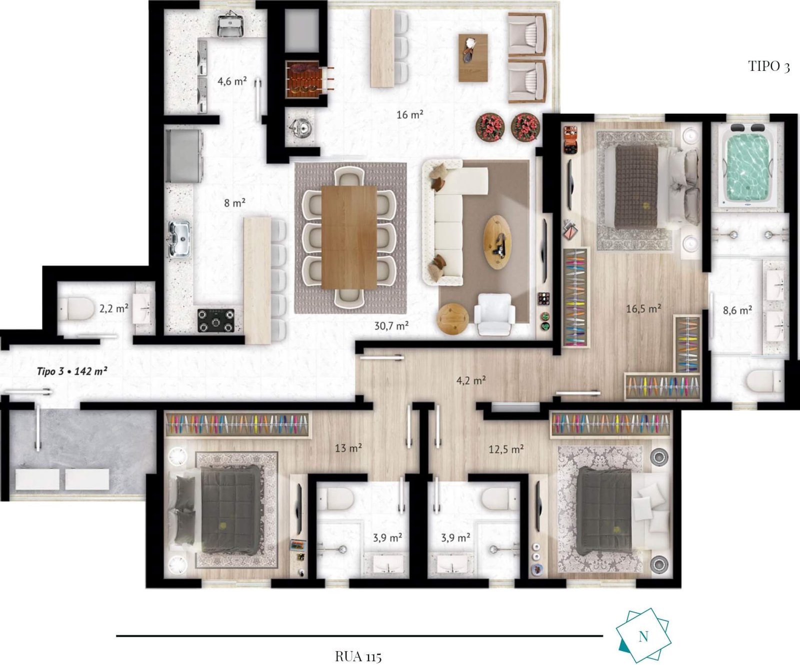 • Acabamentos de Alta Qualidade: Materiais e acabamentos de primeira linha, garantindo durabilidade e estilo.